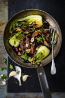Pak choï et onglet de bœuf à la sauce d’huître et à l’ail